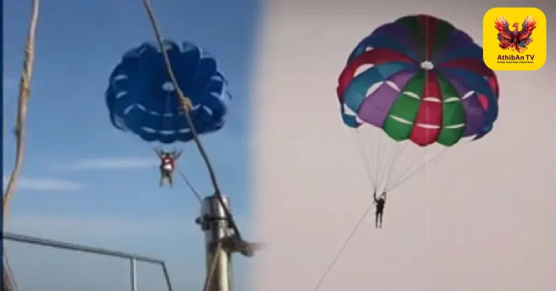 கோவாவின் பிரபல கடற்கரை ஒன்றில் பாராசெயிலிங் விளையாட்டில் ஈடுபட்டிருந்த சுற்றுலா பயணி ஒருவர், அந்தரத்தில் பறந்து கொண்டிருந்தபோது கயிறு அறுந்து கடலில் விழுந்த பதறவைக்கும் வீடியோ வெளியாகியுள்ளது. வானத்தில் சுமார் 50 அடிக்கும் அதிகமான உயரத்தில் பாராசூட் மூலம் பறந்து கொண்டிருந்தபோது, படகுடன் இணைக்கப்பட்டிருந்த பாதுகாப்பு கயிறு எதிர்பாராதவிதமாகப் பாதியிலேயே அறுந்தது. இதனால் நிலைதடுமாறிய பாராசூட், நேராகக் கடலுக்குள் விழுந்தது.