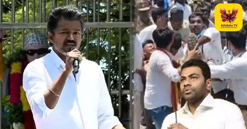 தலைவர் விஜய்யைக் காணப் பல்லாயிரக்கணக்கான ரசிகர்கள் மற்றும் தொண்டர்கள் திரண்டதால், அங்குப் பலத்த போலீஸ் பாதுகாப்பு போடப்பட்டிருந்தது. அப்போது கூட்டத்தைக் கட்டுப்படுத்தும் பணியில் ஈடுபட்டிருந்த ஆயுதப்படை காவலர் சதீஷ் என்பவர் மீது, தவெக நிர்வாகி ஆதவ் அர்ஜுனாவின் கார் எதிர்பாராதவிதமாக மோதியது.