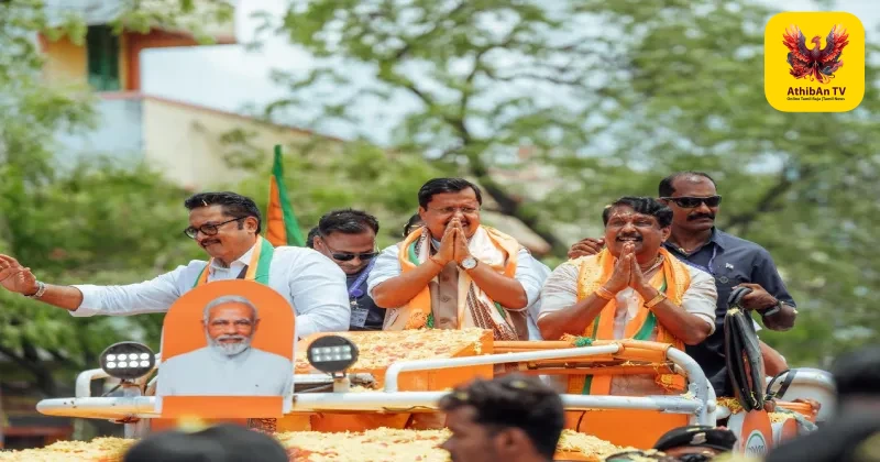 சாத்தூரில் பாஜக தேசியத் தலைவர் நிதின் நபின் பிரம்மாண்ட ரோடு ஷோ: நயினார் நாகேந்திரனுக்கு ஆதரவாக வாக்கு சேகரிப்பு!