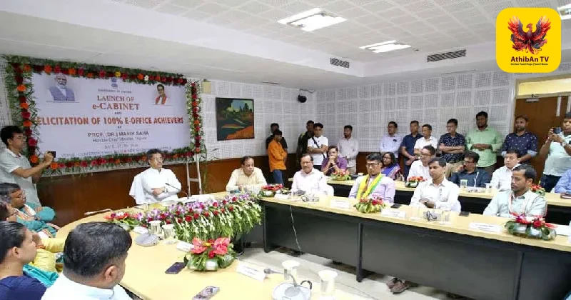 தொழில்நுட்ப வளர்ச்சியை ஆளுமையில் திறம்படப் பயன்படுத்தி வரும் திரிபுரா மாநில அரசு, தனது அலுவலகங்களை ‘இ-ஆபீஸ்’ (E-OFFICE) ஆக மாற்றியதைத் தொடர்ந்து, தற்போது அமைச்சரவையையும் ‘இ-கேபினட்’ (E CABINET) ஆக மாற்றி சாதனை படைத்துள்ளது. பாரதிய ஜனதா கட்சியைச் சேர்ந்த முதலமைச்சர் மாணிக் சாஹா தலைமையிலான இந்த அதிரடி மாற்றத்தின் மூலம், அமைச்சரவைக் கூட்டங்கள் மற்றும் ஆலோசனைகள் அனைத்தும் காகிதங்களின் பயன்பாடின்றி ஆன்லைன் வாயிலாகவே நடத்தப்படுகின்றன.