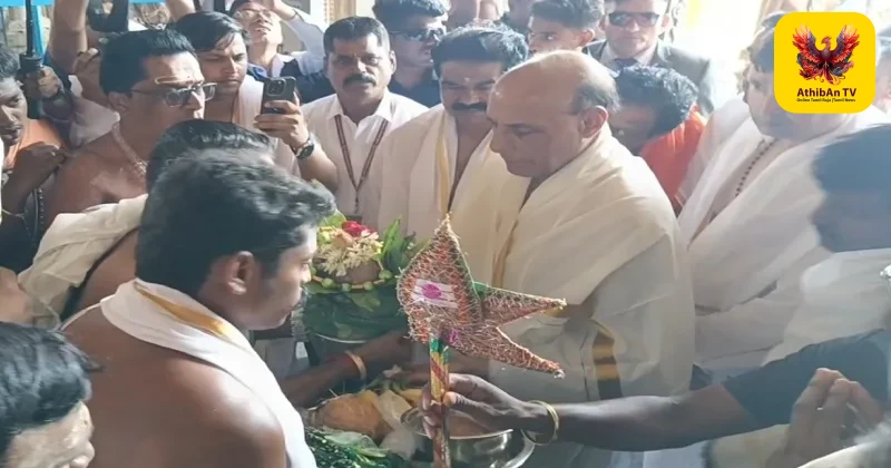 • பூரணகும்ப மரியாதை: அங்கிருந்து கார் மூலம் திருச்செந்தூர் கோயிலுக்கு வந்த அவருக்கு, கோயில் நிர்வாகம் சார்பில் வேத விற்பன்னர்கள் முழங்க ‘பூரணகும்ப மரியாதை’ அளித்து உற்சாக வரவேற்பு அளிக்கப்பட்டது.