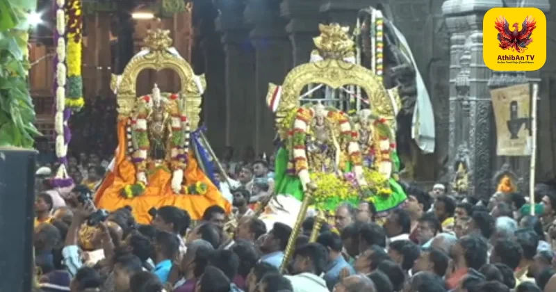 • சிறப்பு அலங்காரம்: முன்னதாக, கோயில் கம்பத்தடி மண்டபத்தில் உள்ள கொடி மரம் தர்ப்பை புற்கள் மற்றும் வெண்பட்டுகளால் அலங்கரிக்கப்பட்டு, விசேஷ பூஜைகள் மற்றும் தீபாராதனைகள் நடைபெற்றன.