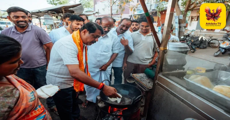 சாத்தூரில் நயினார் நாகேந்திரன் தீவிர பரப்புரை: சாலையோரக் கடையில் பூரி சுட்டு நூதன முறையில் வாக்கு சேகரிப்பு!