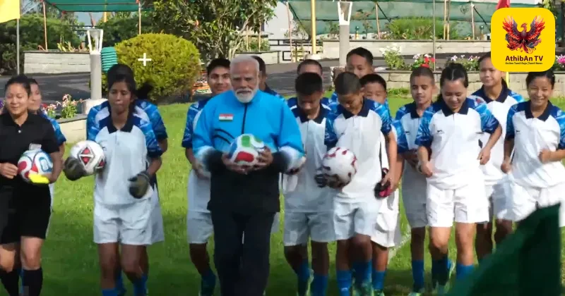 வீரர்களுடன் கால்பந்து விளையாடிய புகைப்படங்களைப் பகிர்ந்துள்ள பிரதமர் மோடி, தனது பதிவில் குறிப்பிட்டதாவது: