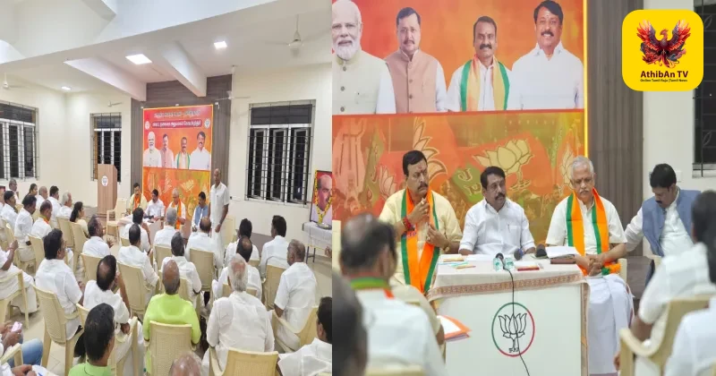 தமிழக சட்டமன்றத் தேர்தல் நிறைவடைந்துள்ள நிலையில், தேர்தல் பணிகள் மற்றும் அடுத்தகட்ட நடவடிக்கைகள் குறித்து விவாதிக்க தமிழக பாஜக மையக்குழுவின் ஆலோசனைக் கூட்டம் கோவையில் நடைபெற்றது. பீளமேடு பகுதியில் உள்ள அக்கட்சியின் மாவட்ட அலுவலகத்தில் நடைபெற்ற இந்த முக்கியக் கூட்டத்திற்கு, பாஜக தேசிய அமைப்புச் செயலாளர் பி.எல்.சந்தோஷ் தலைமை தாங்கினார்.